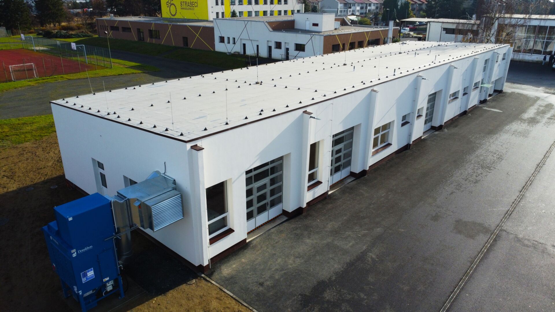 Dokončili jsme kompletní přestavbu ocelové haly pro SOU v Novém Strašecí, v rámci které vzniklo nové dispoziční řešení zahrnující svařovnu, CNC centrum, brusírnu, přípravnu materiálu, učebnu a kancelář mistrů. Součástí realizace byly také nové šatny, hygienické zázemí a bezbariérové WC.