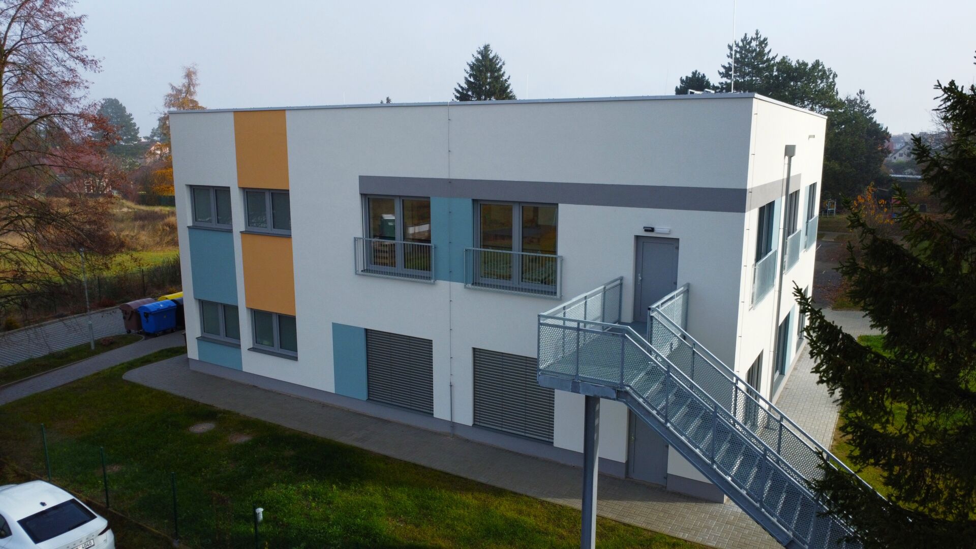 Na projekt navazovaly také kompletní úpravy okolí přístavby. Součástí prací byla realizace nových obrubníků, pokládka zpevněných ploch a dlažeb i vybudování příjezdové komunikace. Celý prostor kolem budovy tak získal moderní, funkční a esteticky jednotný vzhled, který přirozeně doplňuje novou část školky a zajišťuje bezpečný a pohodlný přístup.
